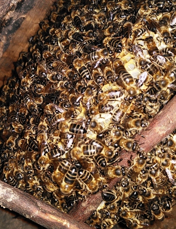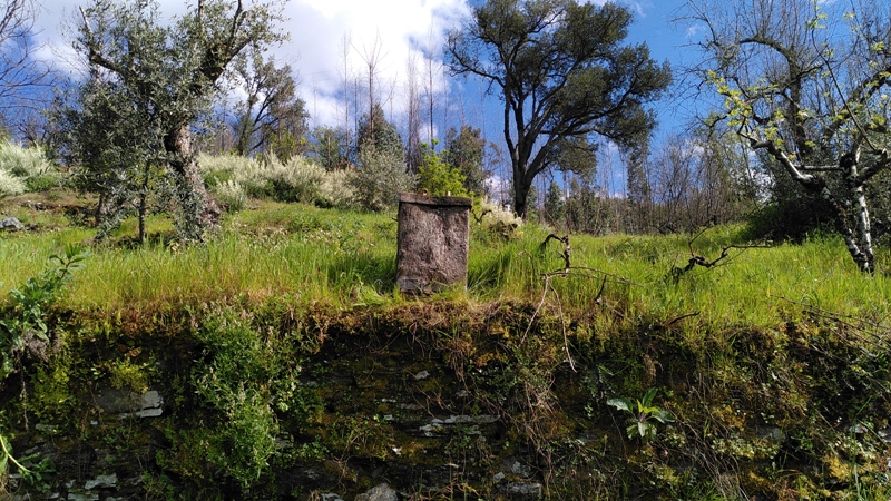 We found a traditional cork hive in one of the burnt houses. It miraculously survived the fire. The owner told us we could use it, so we put it on our land. A couple of weeks later we had our first natural swarm.