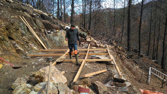In 2018 we build a lot of the basic facilities like a field kitchen, compost toilet and running water. 2019 was the year we got our water-turbine running providing us with loads of electricity and 2020 we began the renovation of a big house in the village. This next to the normal tasks like cleaning the land, extending the vegetable garden and beekeeping.